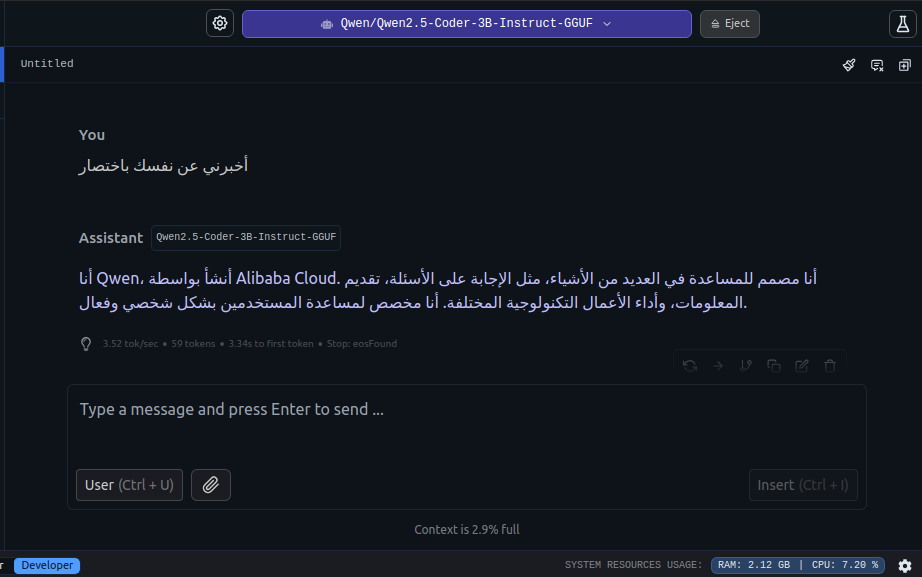 While searching for an easy way to experiment and test large language models, I found this program, which allows you to download an LLM model to your computer and talk to it via chat with ease and without any programming complexity. Installation and use of the program is done entirely through a graphical interface. The program supports common operating systems (Windows, Linux, Mac), and supports conversation in Arabic. After downloading the language models, you can chat with any of them without an internet connection.